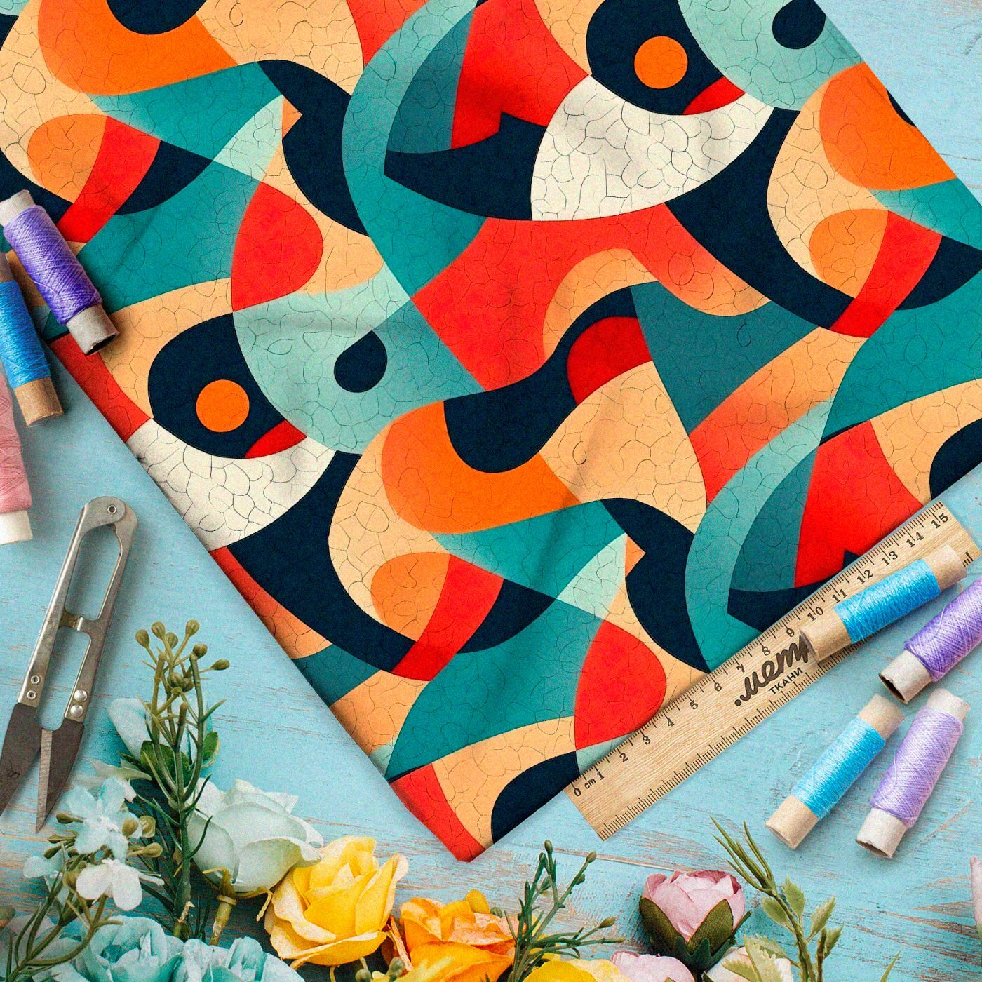 Искусственный шелк Армани поражает насыщенностью и глубиной цветов. А благодаря качественному принту, он не теряет своей яркости даже после многих стирок.