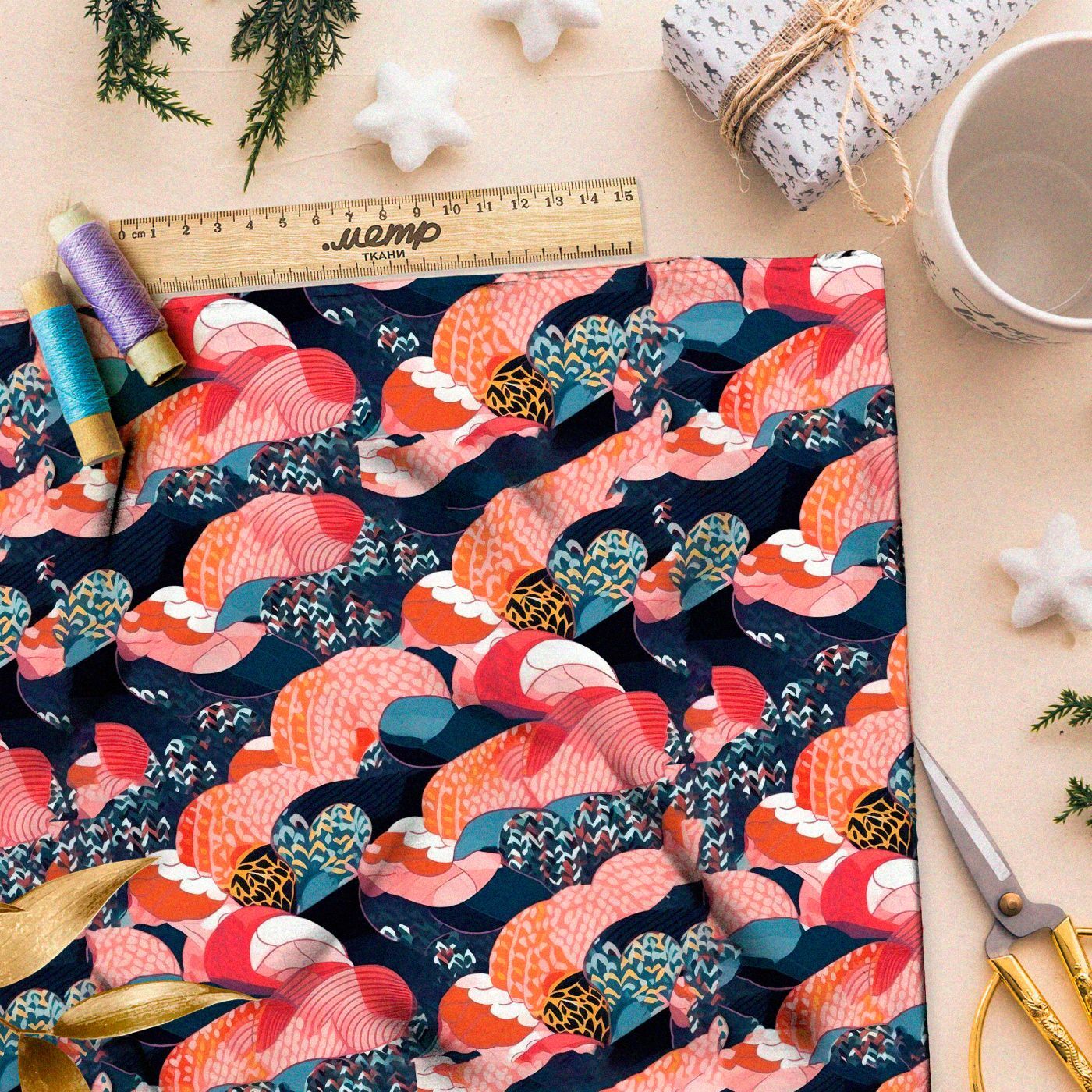 Обратите внимание, изделия приведены для примера. На готовом изделии принт будет смотреться по-другому. Точное расположение деталей рисунка относительно кроя возможно при разработке кроя под ткань или при печати деталей кроя на ткани.Выберите масштаб рисунка