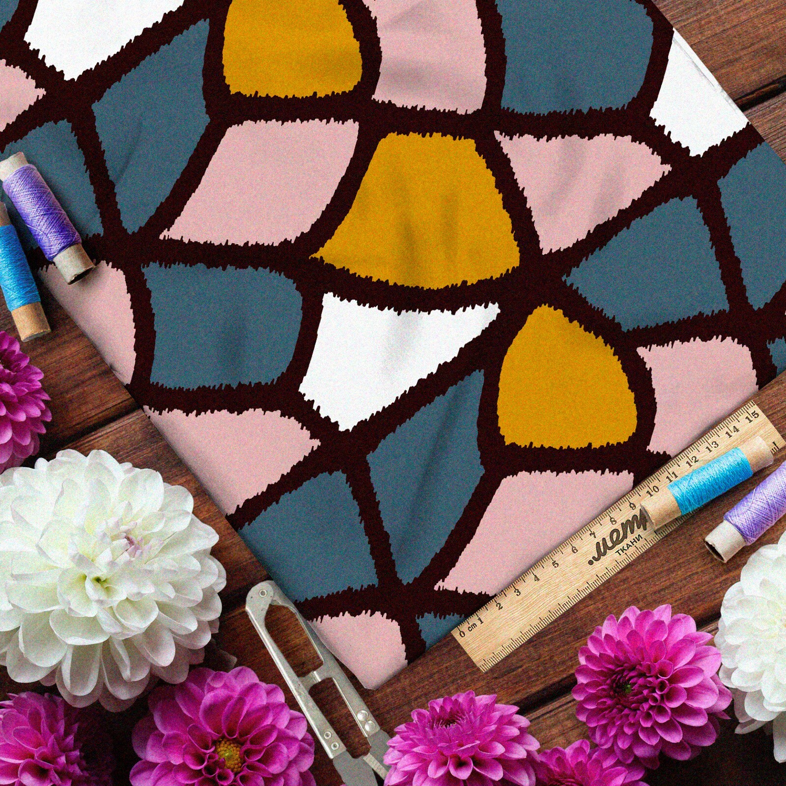 Сочные и яркие цвета этой ткани сохраняют свою глубину даже после многих стирок, а принт остается таким же ярким и четким, не теряя своей первозданной красоты.