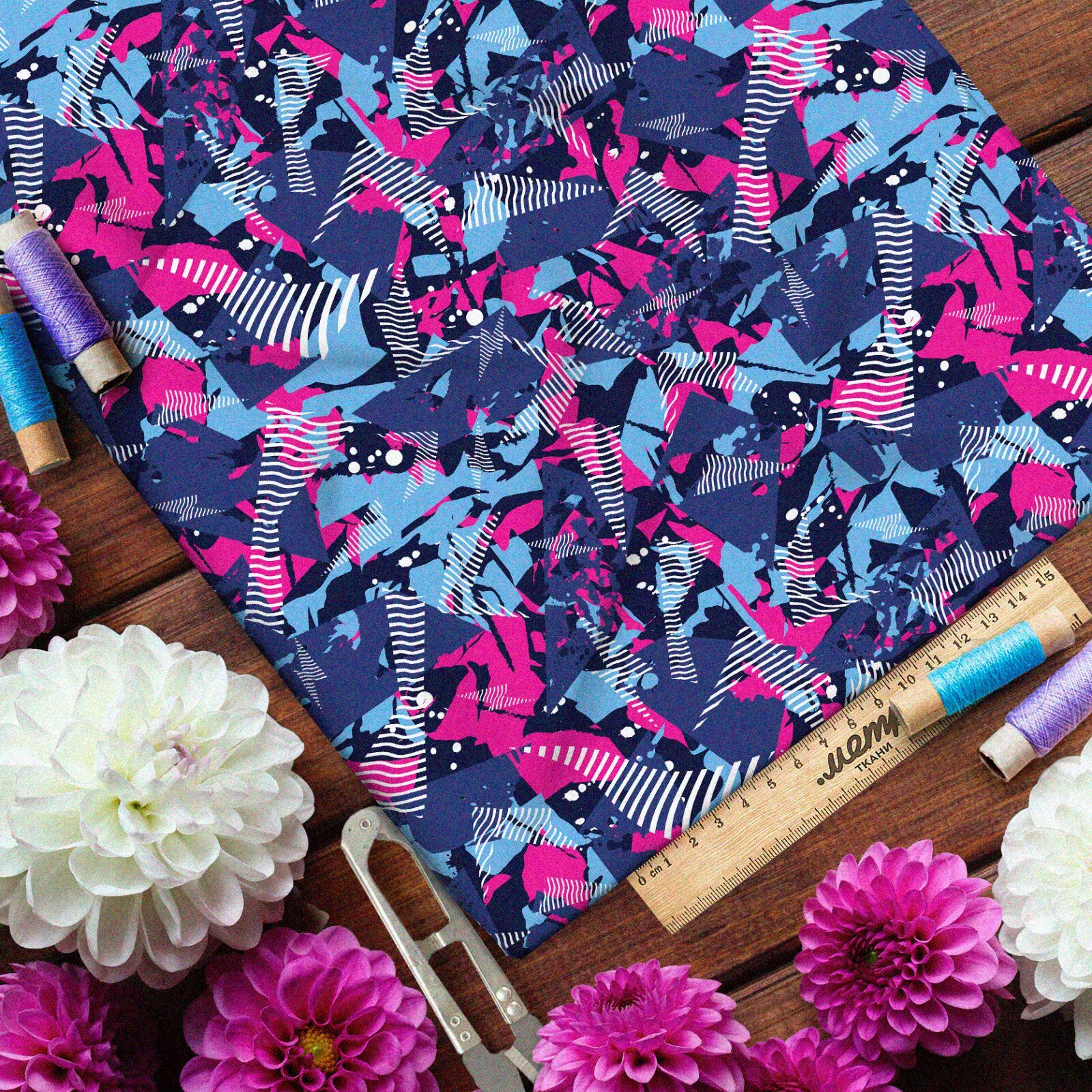 Ткань атлас изготовлена из синтетического волокна. Посмотрите на уникальную ткань, которая позволит вам максимально комфортно чувствовать себя в одежде, не сковывая ваши движения. Она идеально ощущается на теле – такой приятной гармонии вы не чувствовали давно: кажется, будто на вас не одежда, а приятное полотно, которое покрывает все тело. Геометрические формы рисунка не только привлекают внимание, но и дополняют ваш образ необычными элементами, что однозначно выделяет вас среди остальных людей. Прекрасные тактильные свойства ткани вы почувствуете уже в первый момент, во время первого прикосновения – ткань буквально создана для того, чтобы использовать ее для пошива одежды. Кстати, мягкость и комфорт ткани дополняется тем, что вы сможете очень легко сшить из нее необходимый для вас предмет гардероба. Натуральный материал легко поддается для кройки и шитья, поэтому у вас не возникнет проблем на этом этапе!
