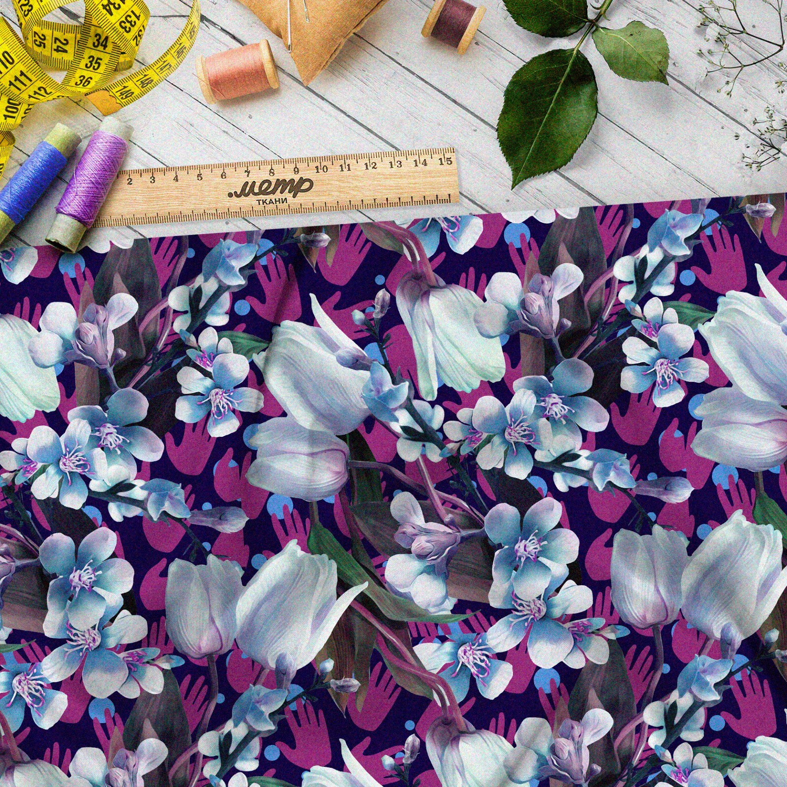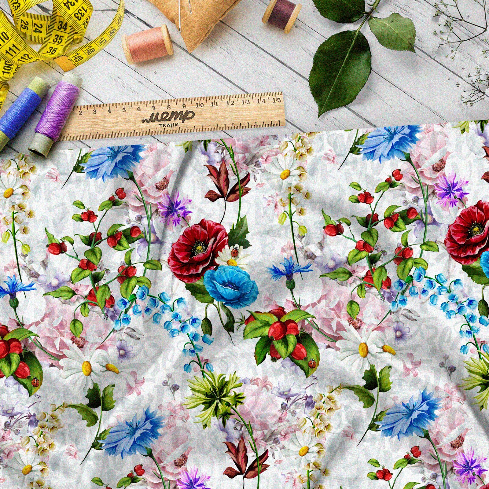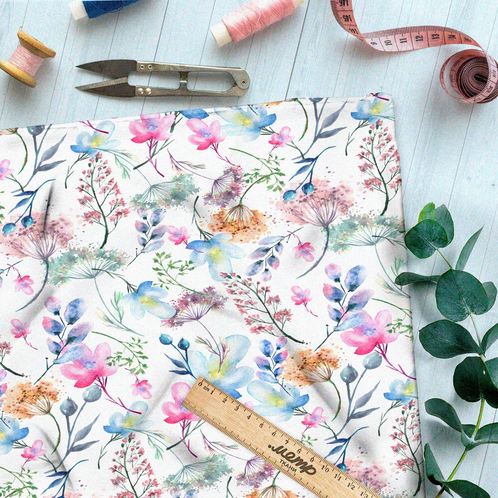 Ткань бязь растения минималистичные