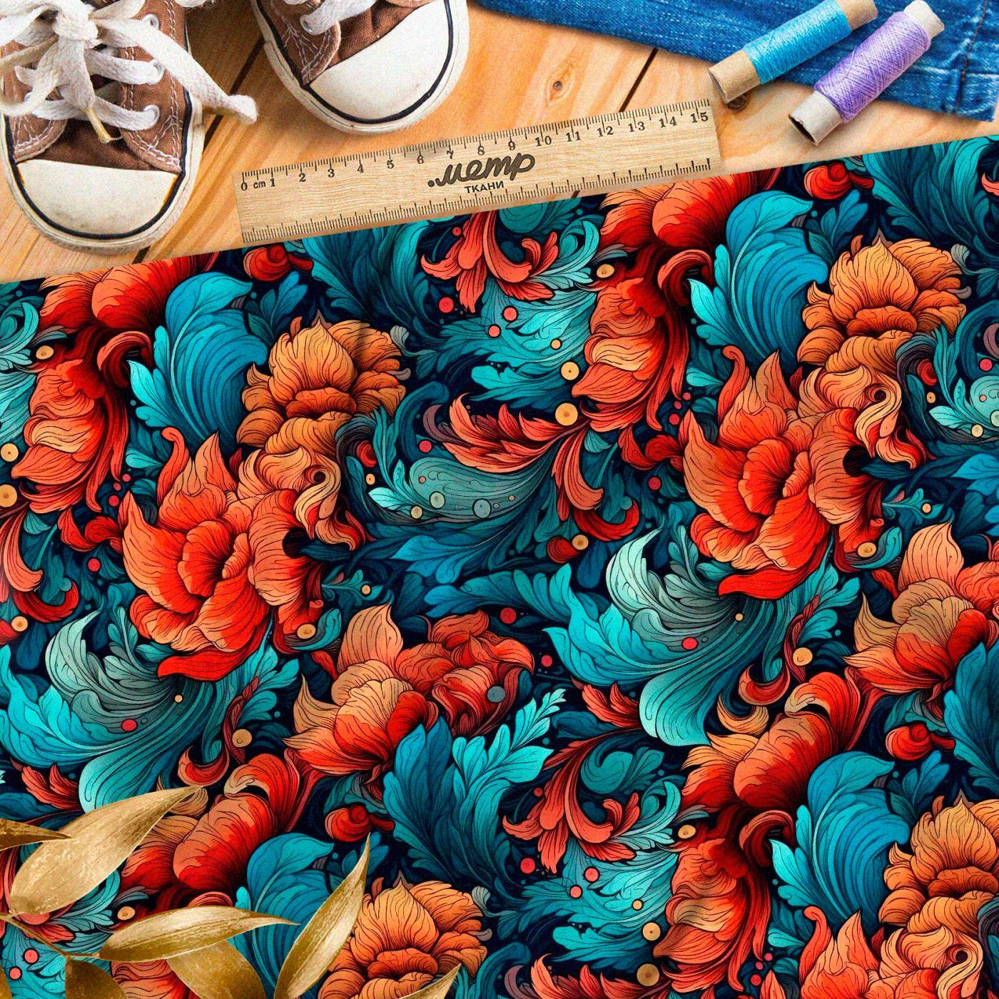 Яркий и сочный принт на ткани бифлекс. Гарантированная долговечность цвета, идеально подходит для одежды, домашнего текстиля и аксессуаров. Цена указана за 1 п.м.