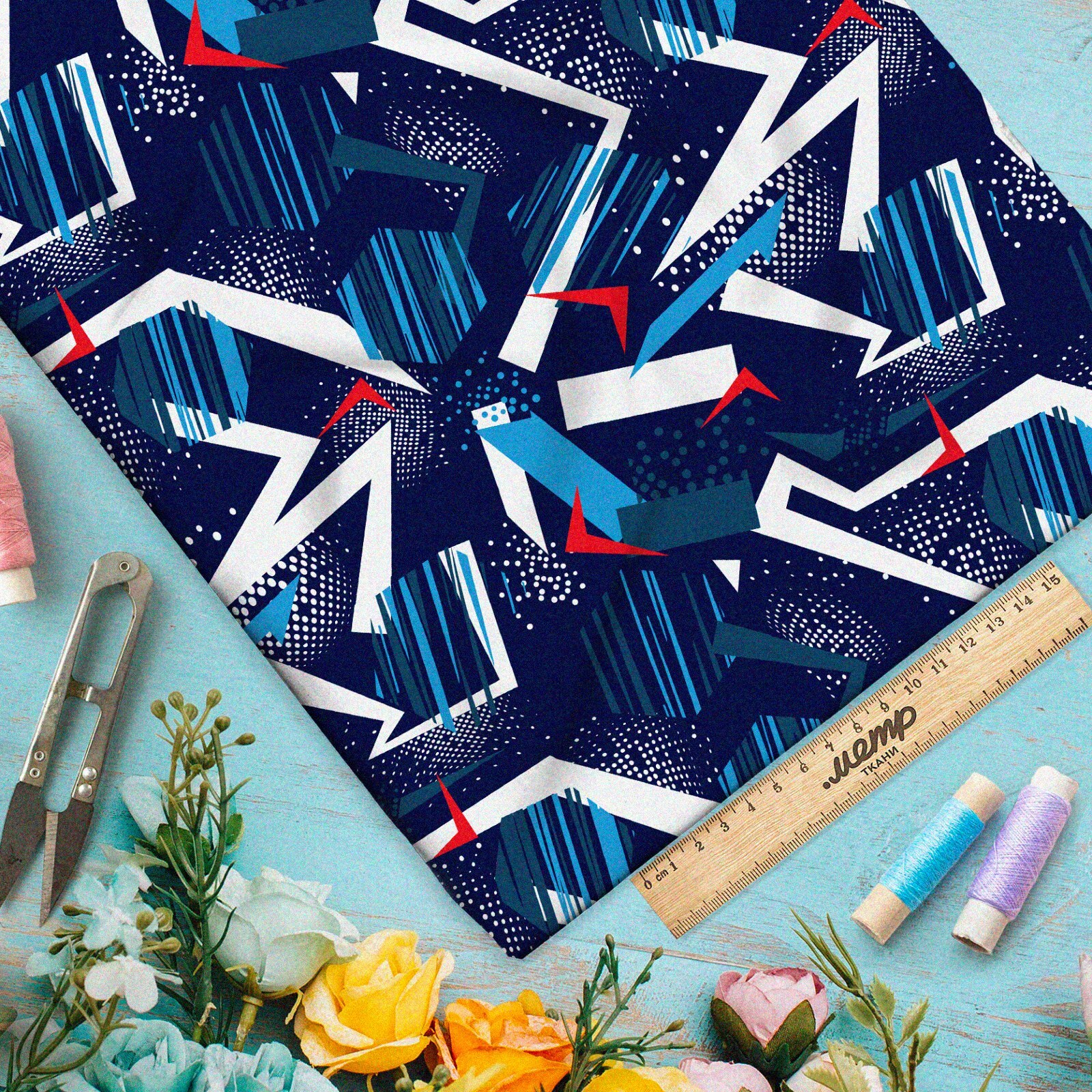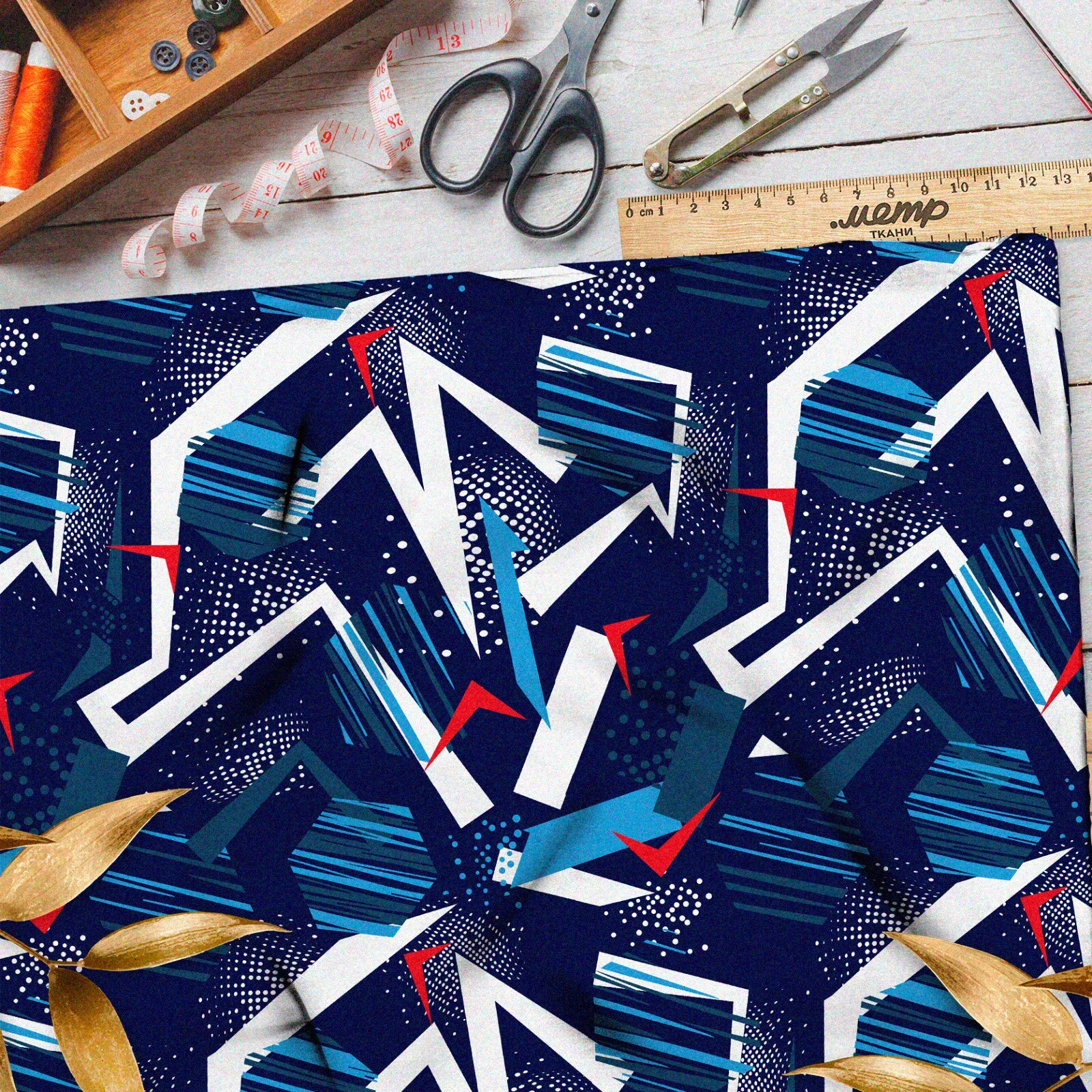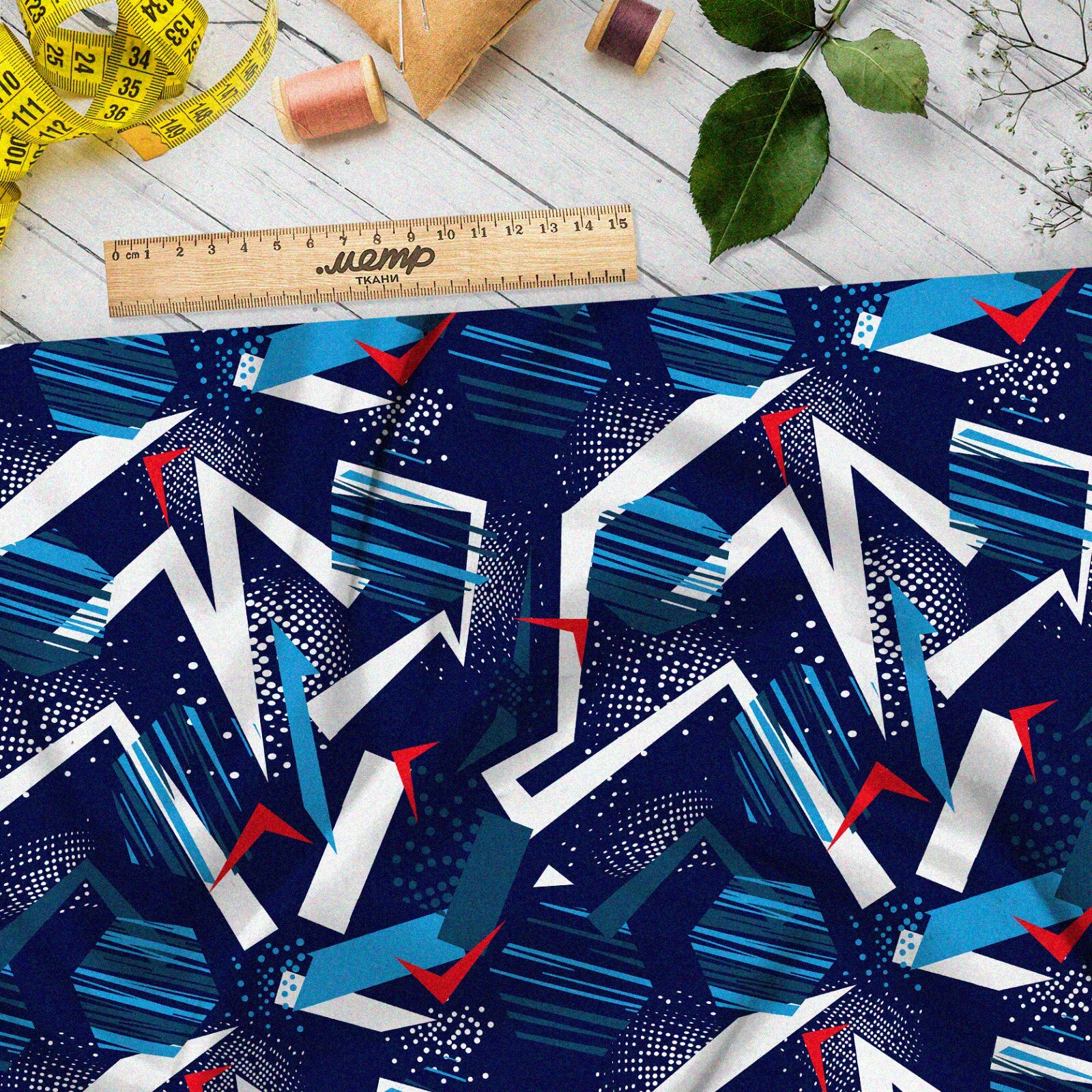 Ткань блэкаут зимняя графика на тёмно-синем фоне