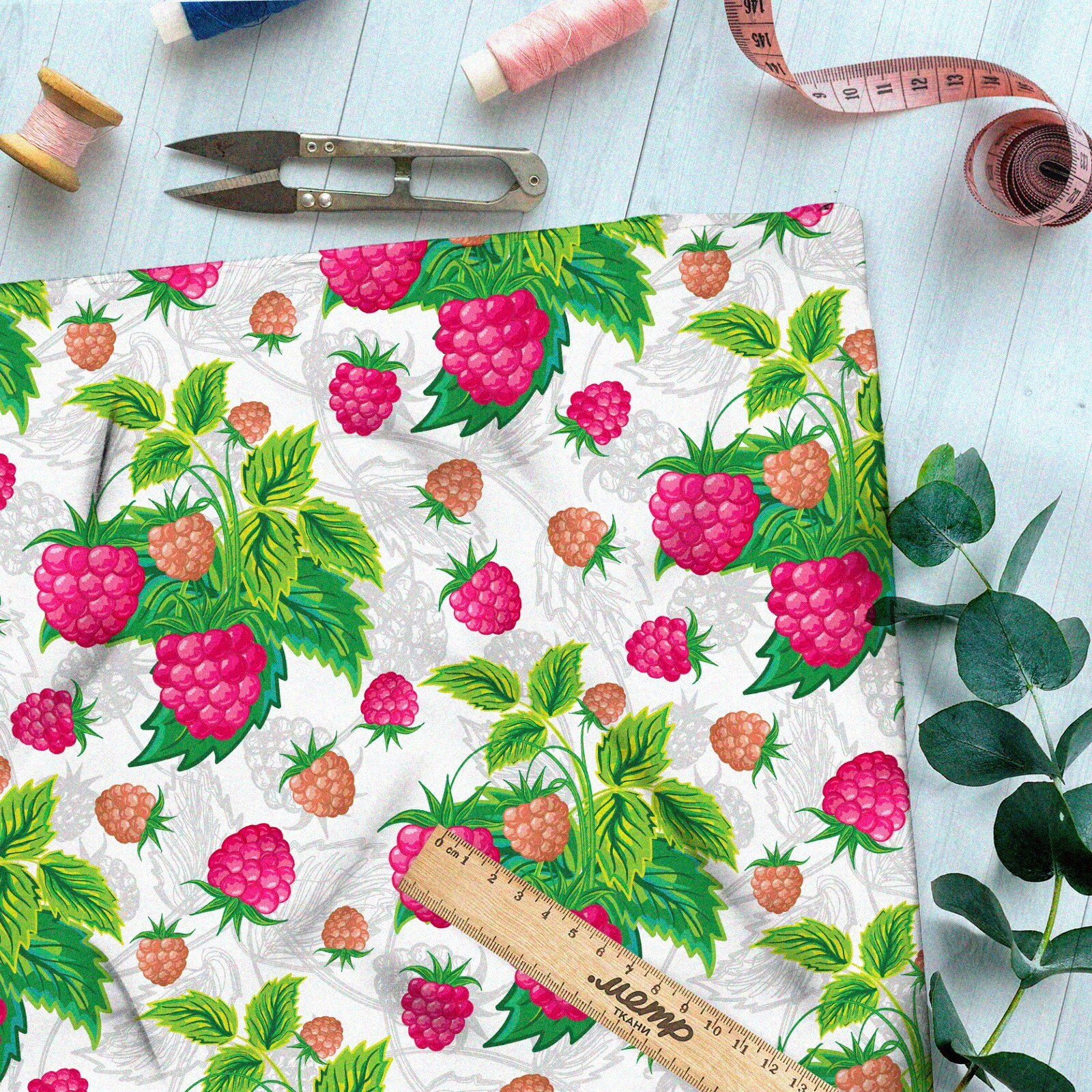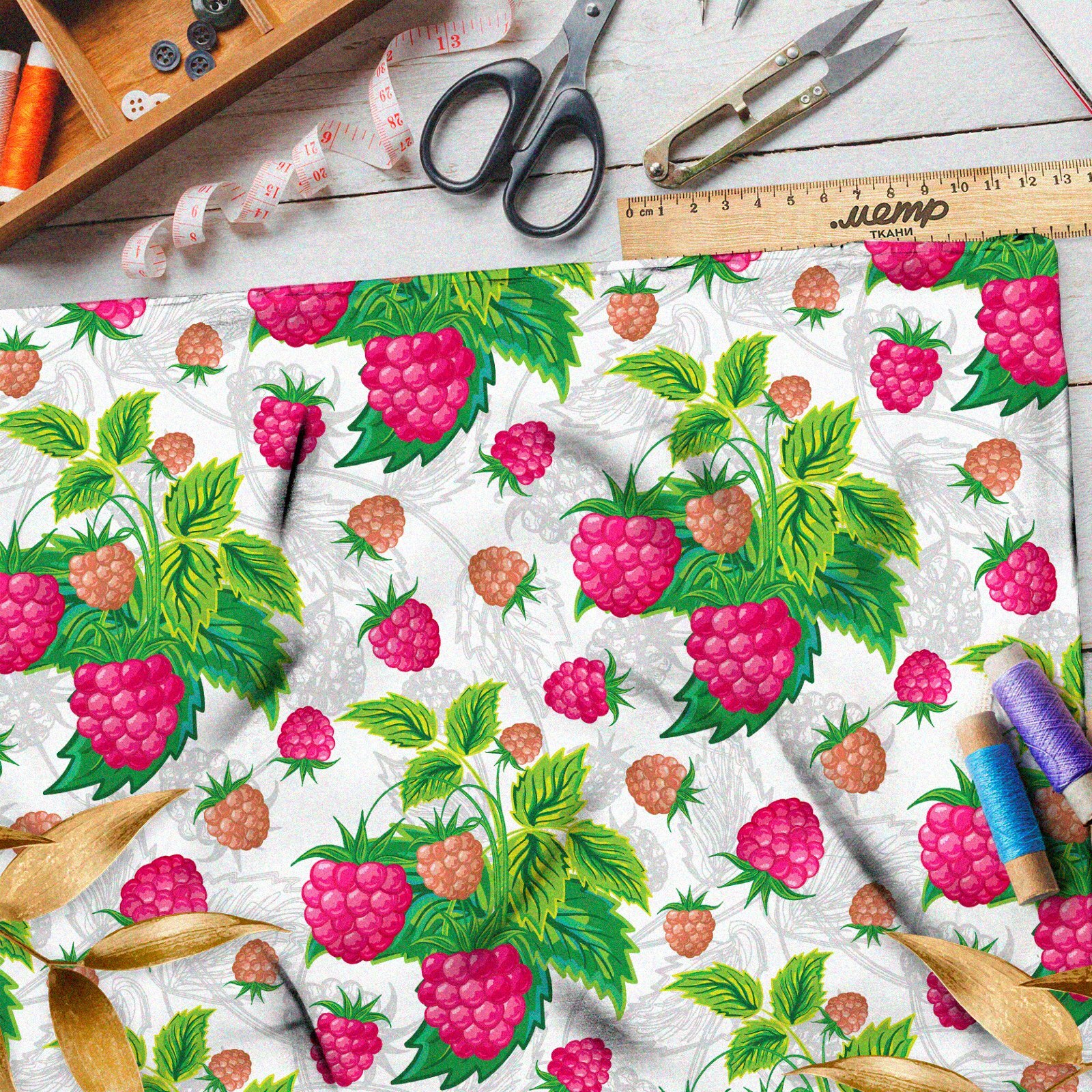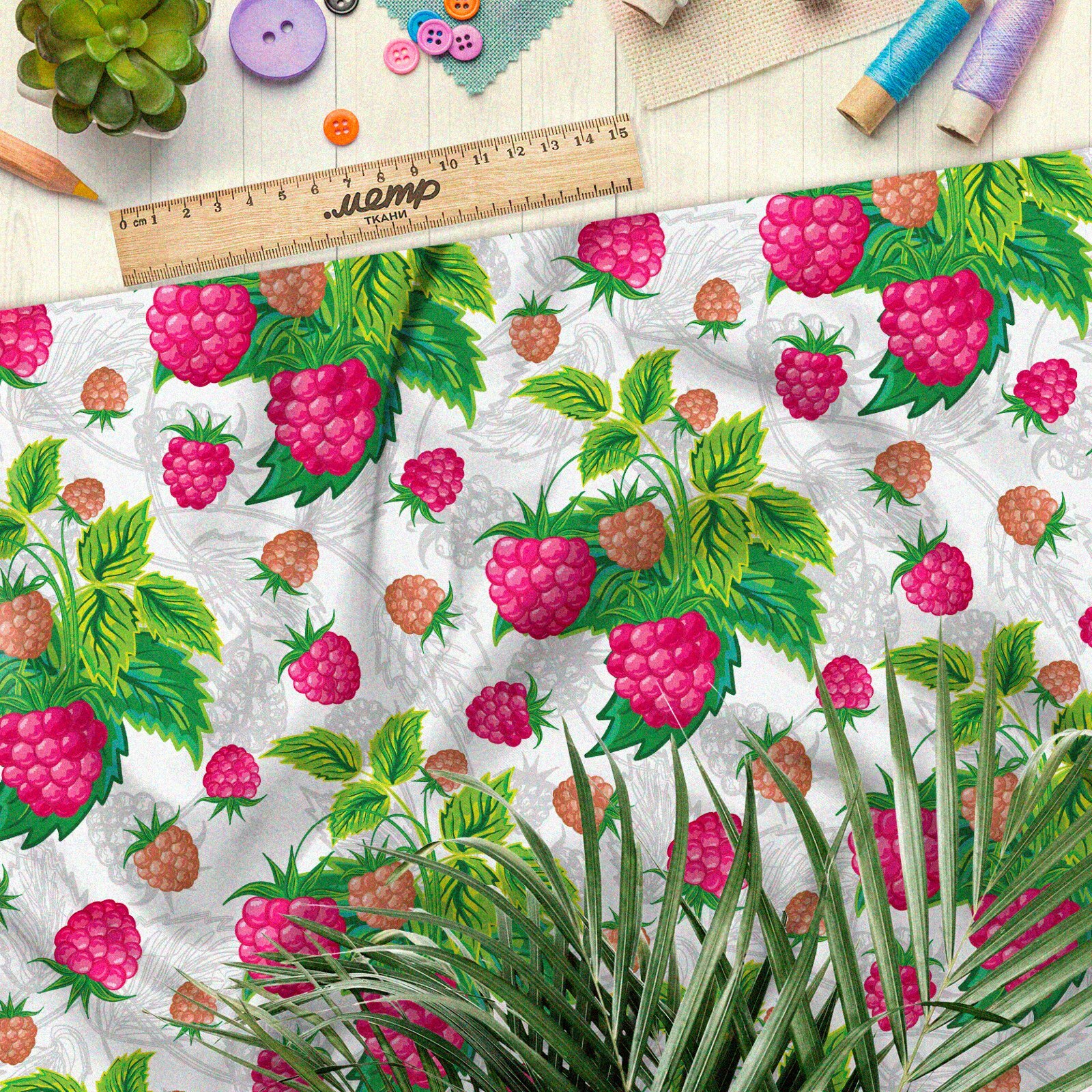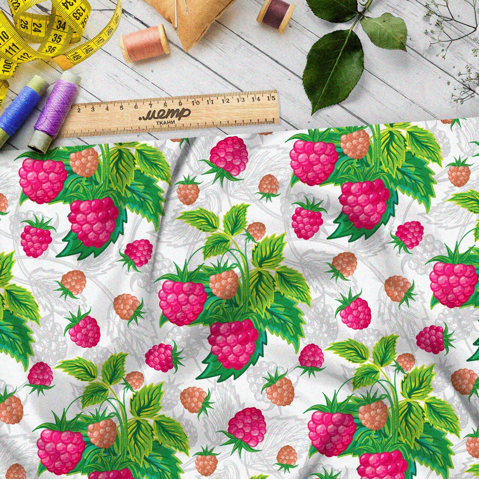 Ткань барби насыщенная малина на бежевом фоне