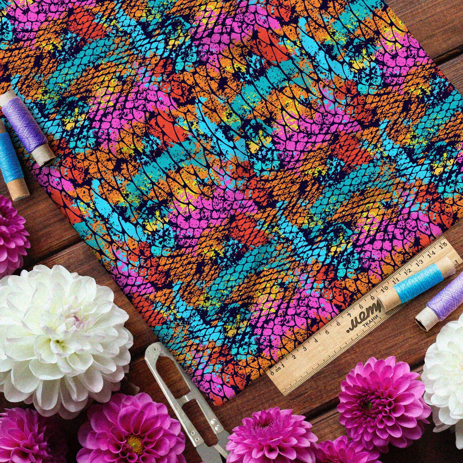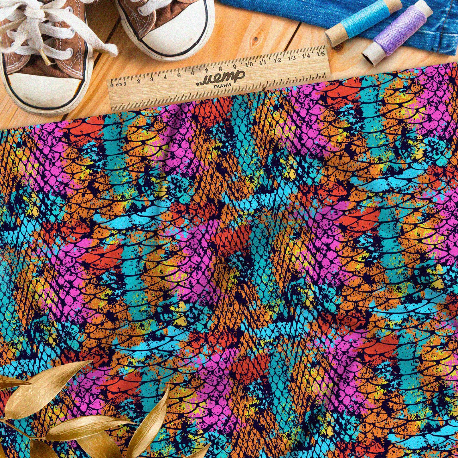 Процесс пошива любого изделия из этого материала не займет у вас много времени – в этом состоит еще одно преимущество ткани. Материал легко поддается механическому воздействию, поэтому вы точно сможете легко и быстро сделать из него любой желаемый предмет гардероба. Визуально привлекательная одежда благодаря насыщенному рисунку и контрастному принту привлекает внимание каждого человека и делает вас буквально звездой компании.