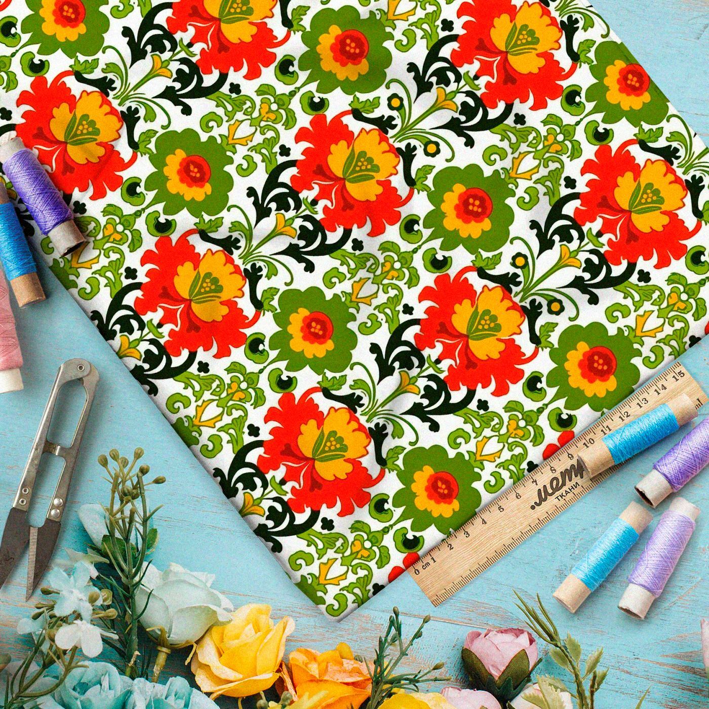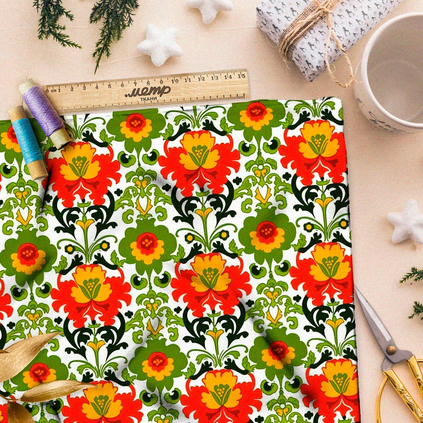 Сочные и яркие цвета этой ткани сохраняют свою глубину даже после многих стирок, а принт остается таким же ярким и четким, не теряя своей первозданной красоты.