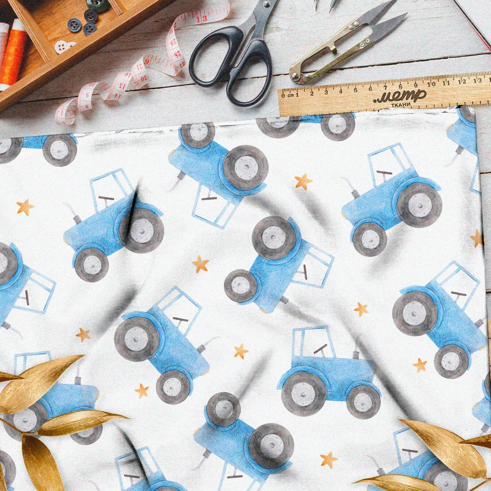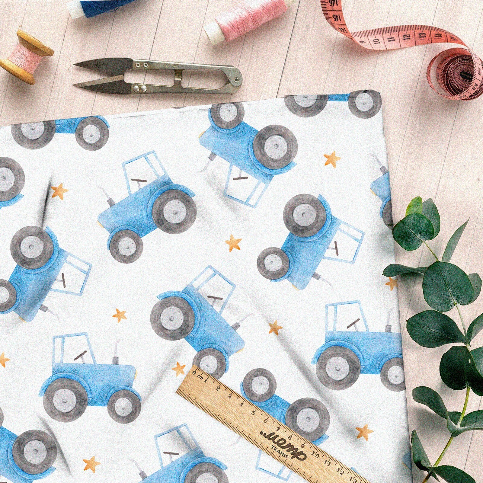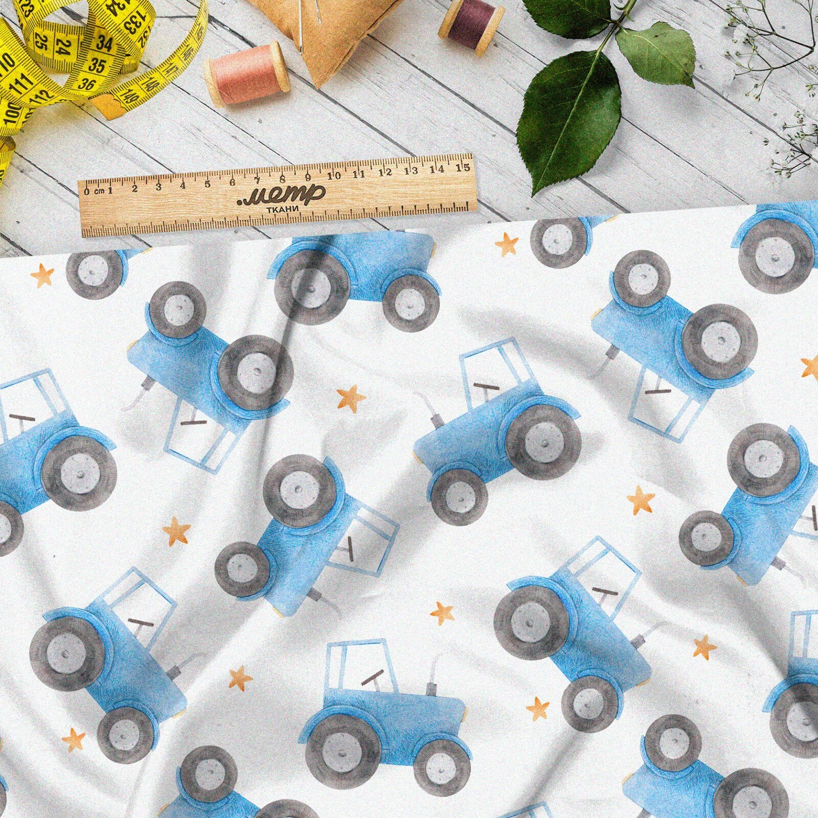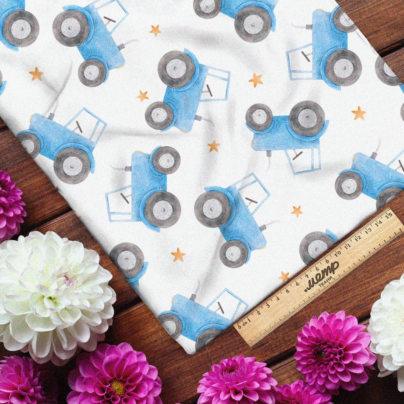 Ткань футер 2-х нитка синий трактор