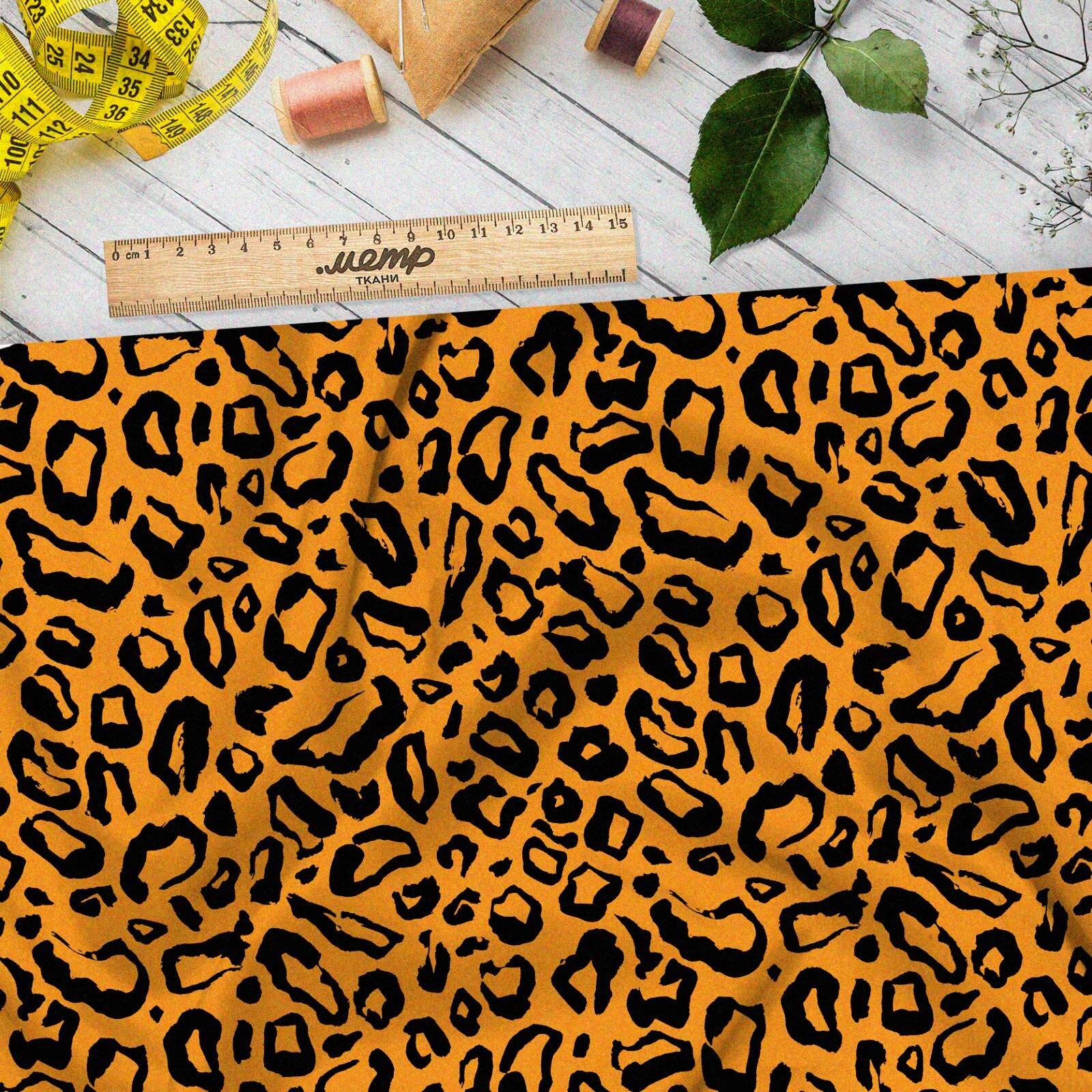 Ткань габардин оранжевый леопардный принт