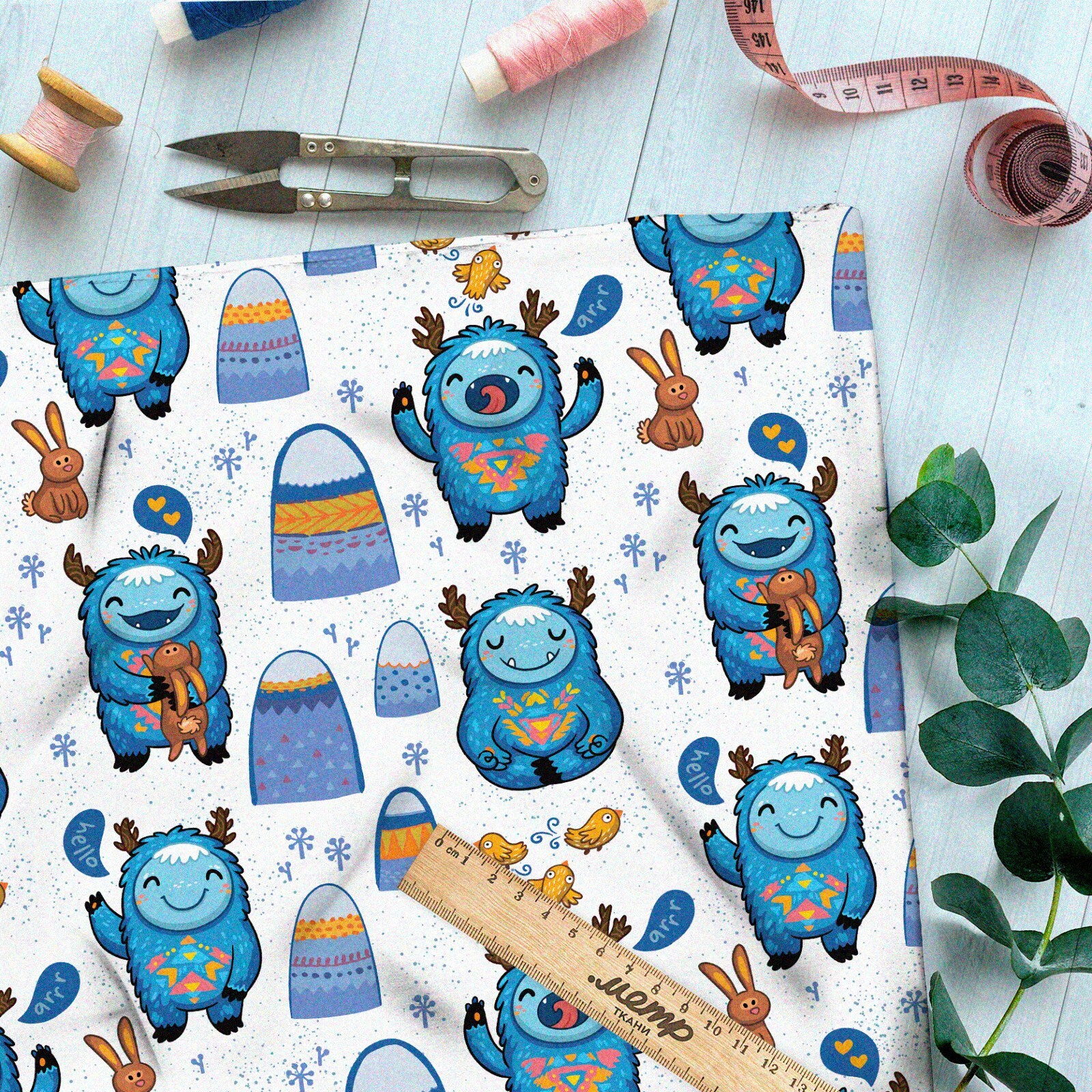 Ткань мембрана пушистые олени и зайки у синих сугробов