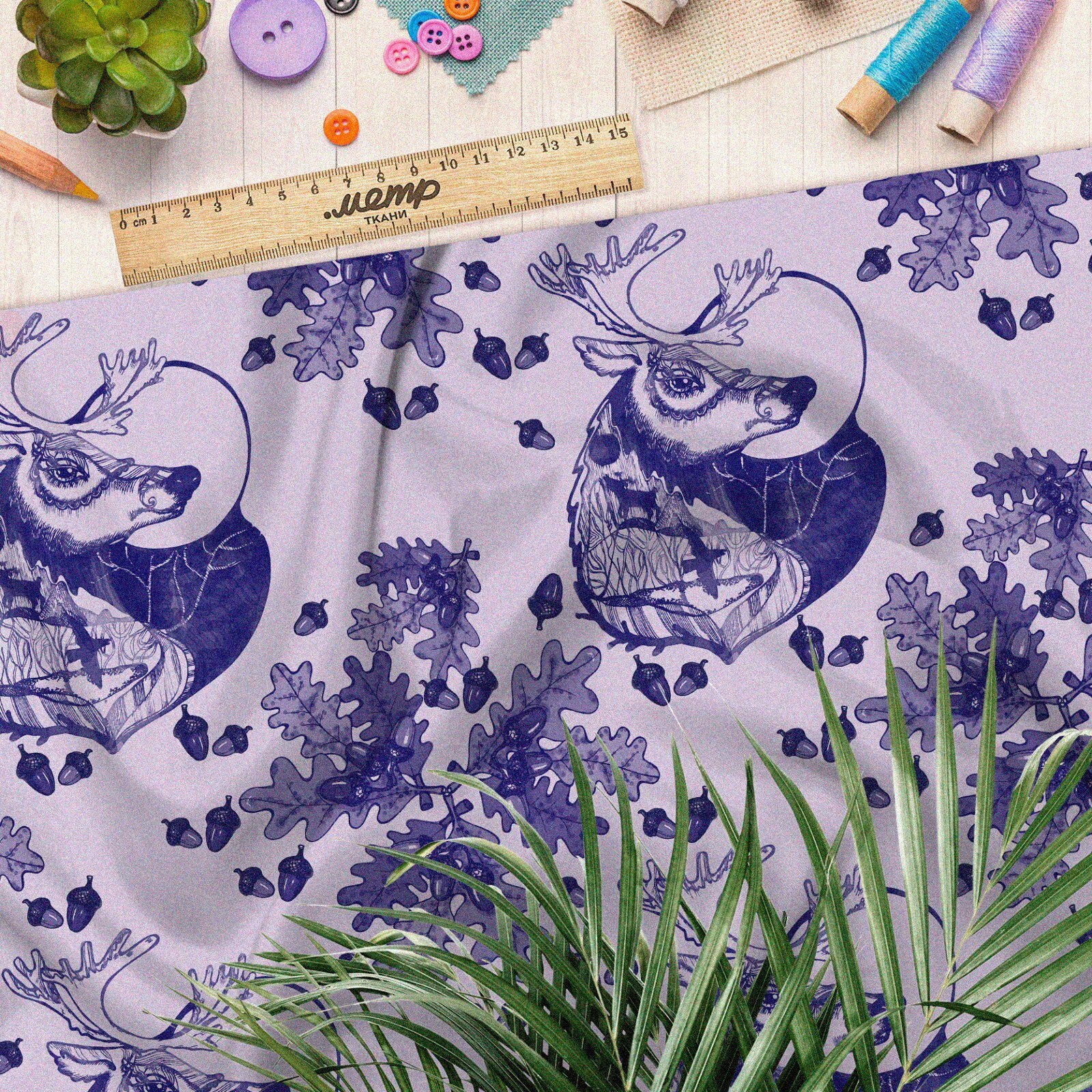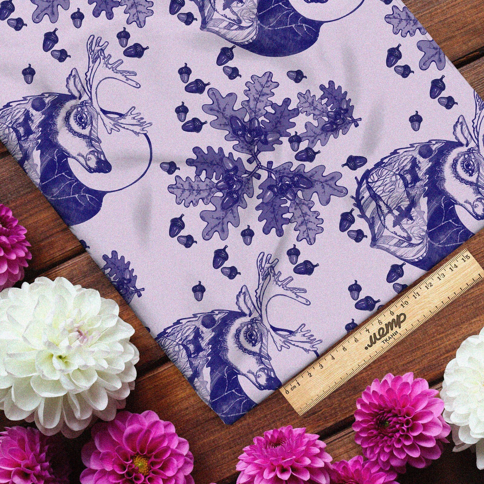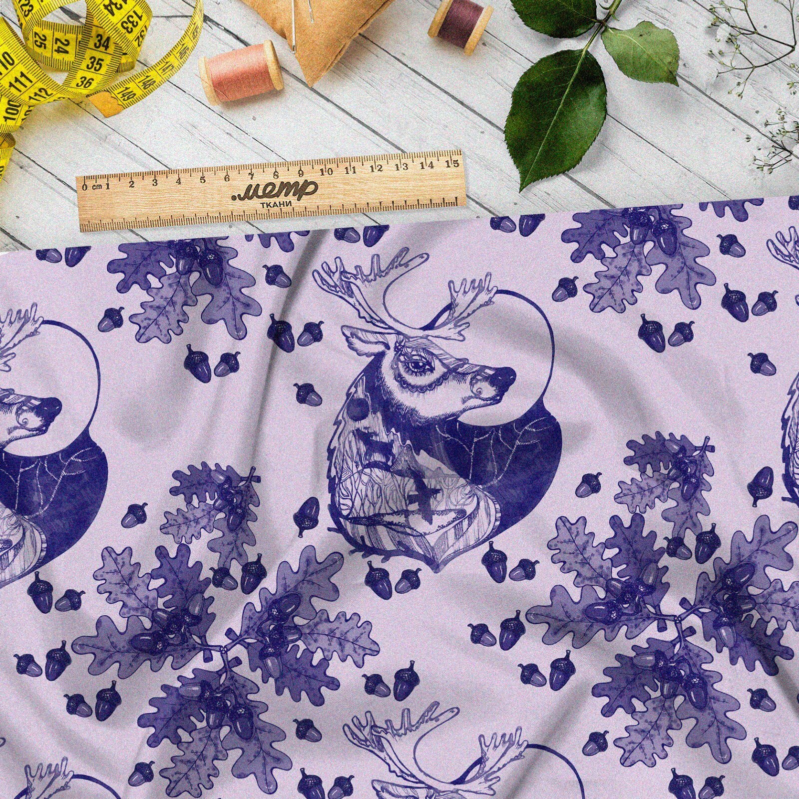 Ткань мембрана олень с листьями желудей