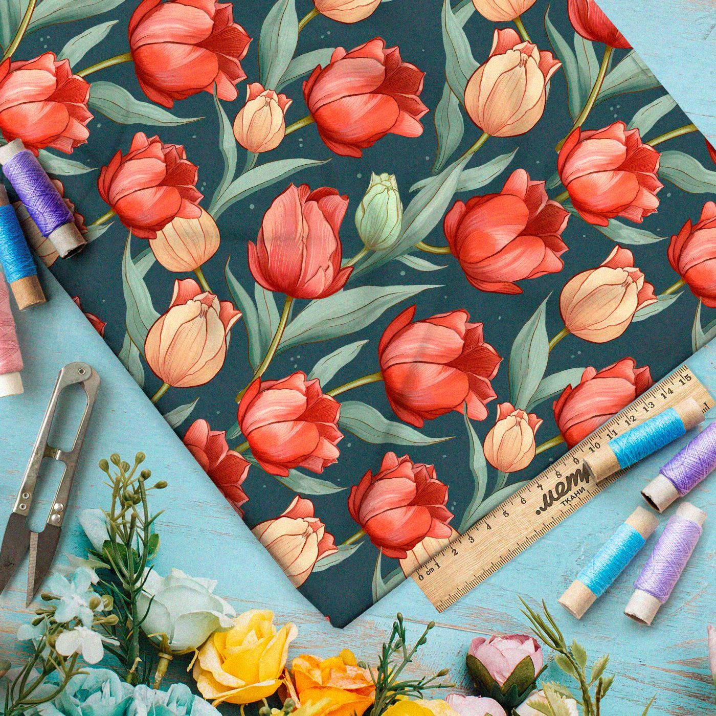 Ткань Ниагара Софт сумеречные тюльпаны