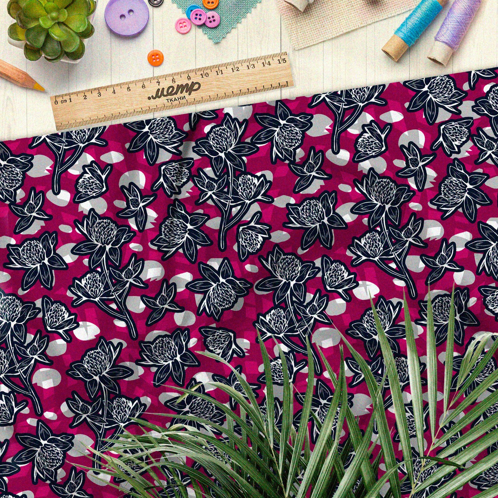 Яркий и сочный принт на ткани армани-шелк. Гарантированная долговечность цвета, идеально подходит для одежды, домашнего текстиля и аксессуаров. Цена указана за 1 п.м.