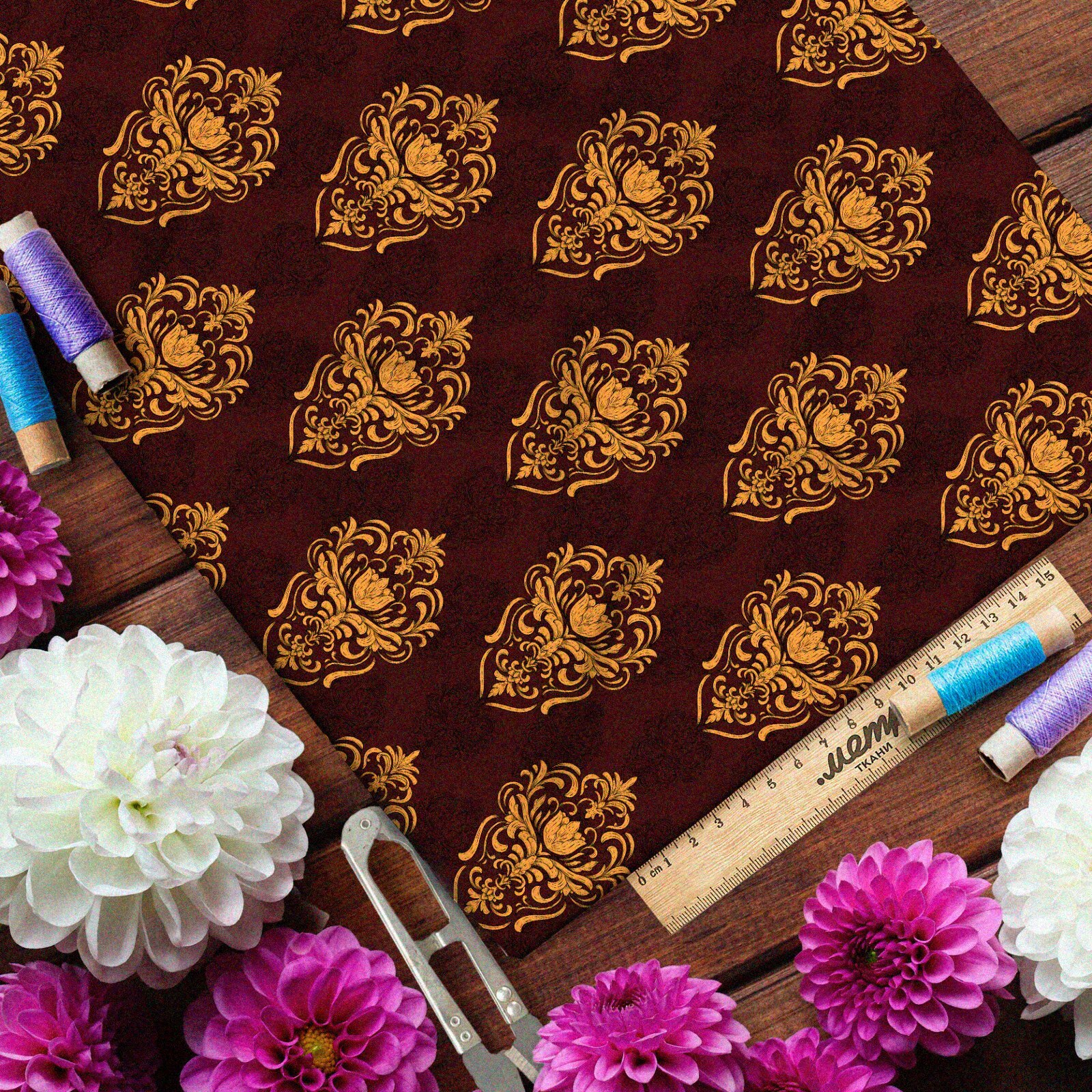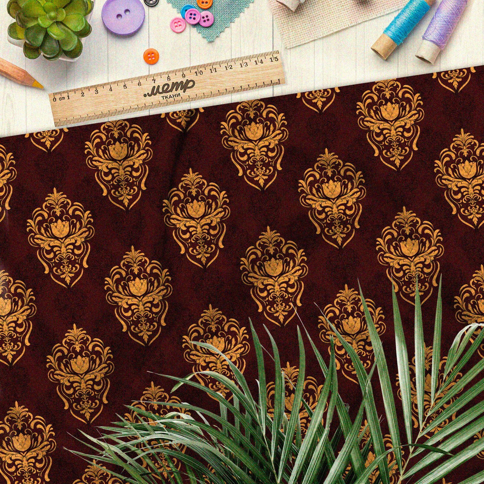 Ткань шелк Армани симметричный золотой узор на бордовом фоне