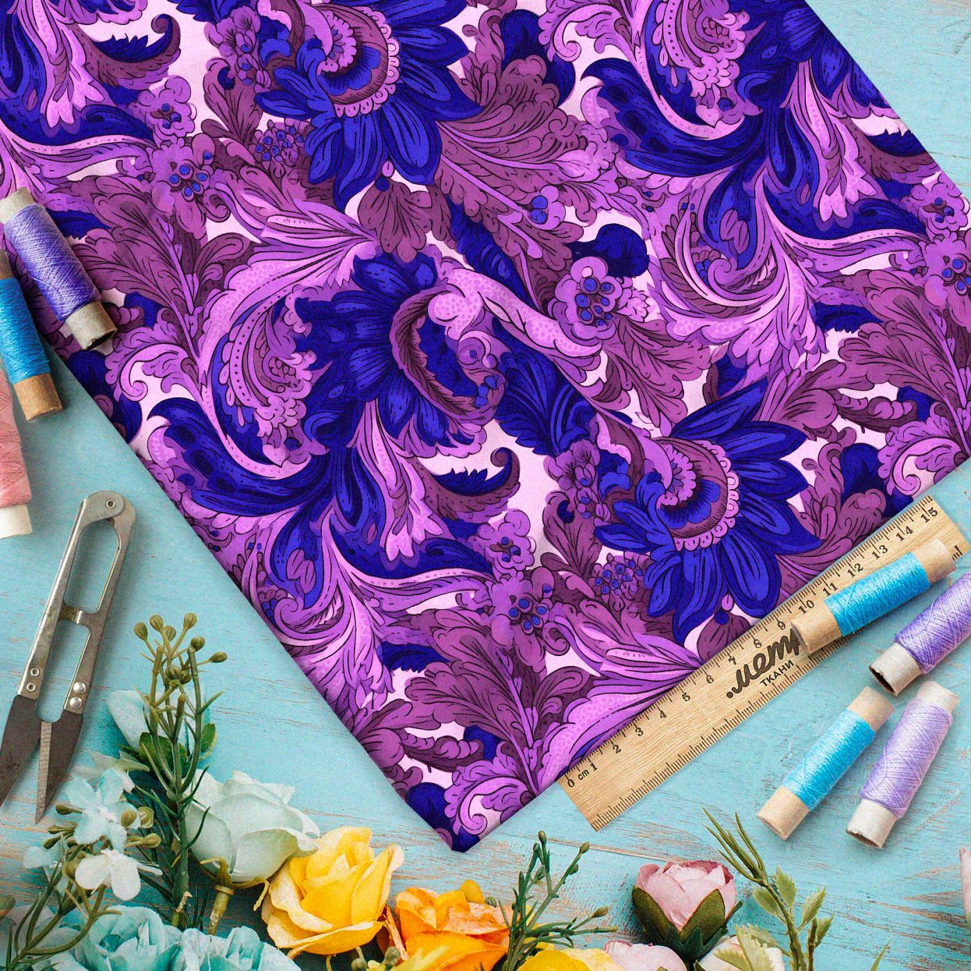 Ткань сатин живые тюльпаны и сирень на сиреневом фоне