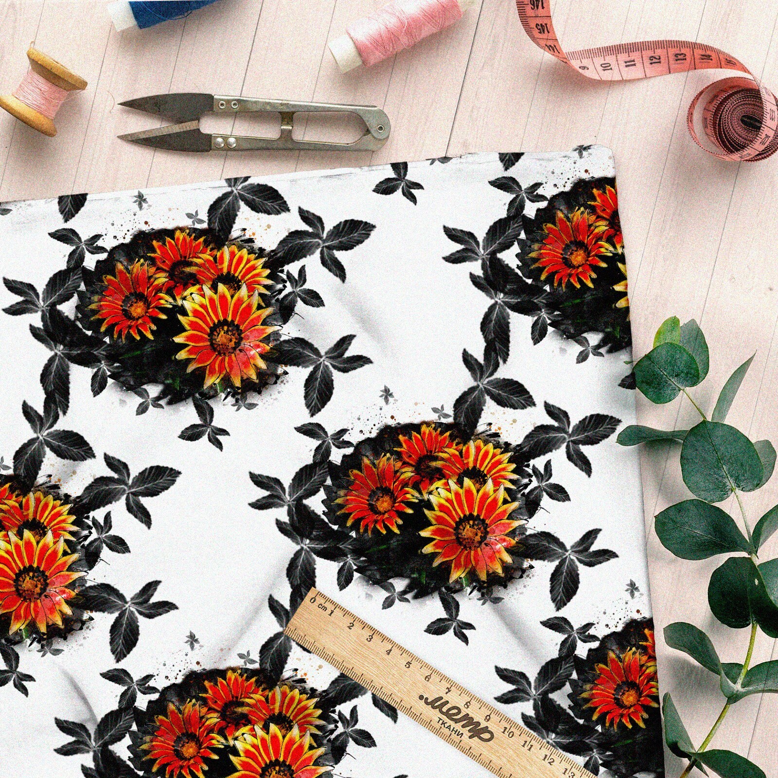 Обратите внимание, изделия приведены для примера. На готовом изделии принт будет смотреться по-другому. Точное расположение деталей рисунка относительно кроя возможно при разработке кроя под ткань или при печати деталей кроя на ткани.